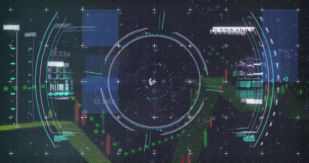 Illustrates high-tech digital interface showcasing financial data and analytics, useful for presentations related to finance, global business strategies, technology applications in marketing data science, or as content for tech-based productions.