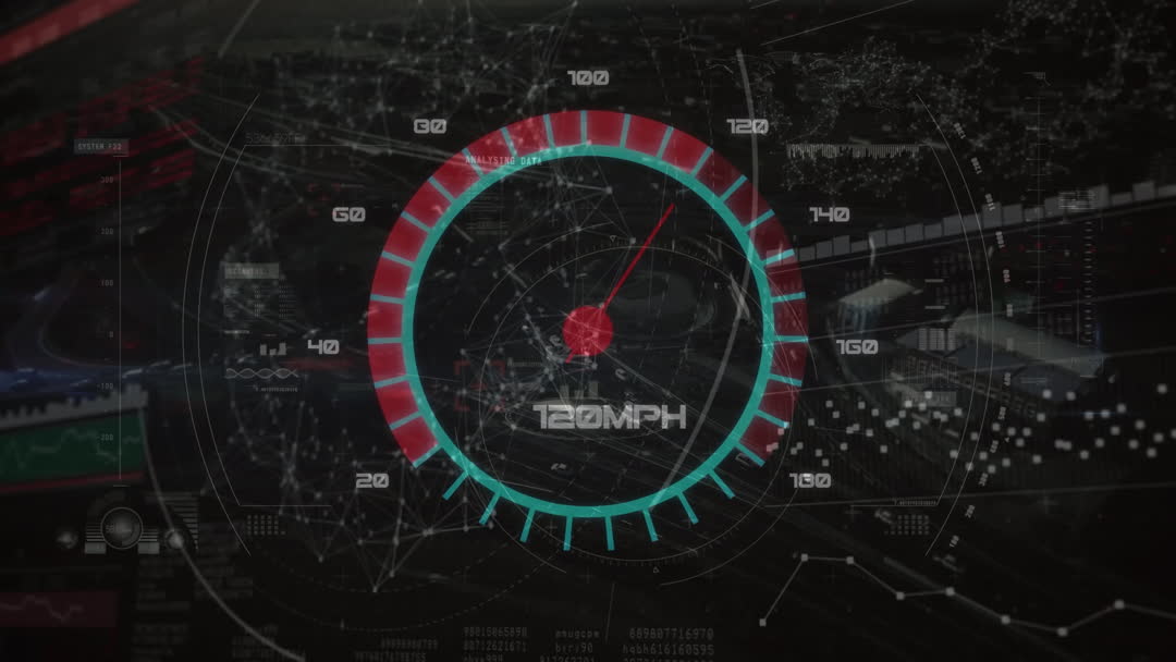 - Digital Interface with Futuristic Speedometer and Global Network Connections