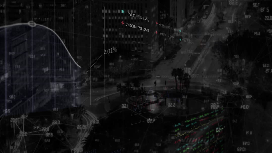 City nightscape background with animated data and graphs offers a futuristic look at global digital interfaces and technology. Useful for subjects on urban innovation, data connectivity, financial analysis tools, or presentations related to tech evolution.