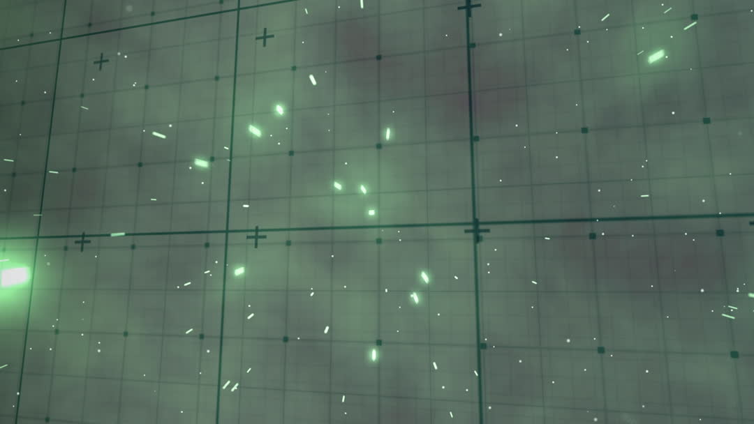 Abstract digital interface displaying animated green lights overlaid on a grid pattern. This is reminiscent of futuristic technology, useful for visuals in technology-themed projects, digital communication presentations, or websites related to innovation and high-tech solutions.
