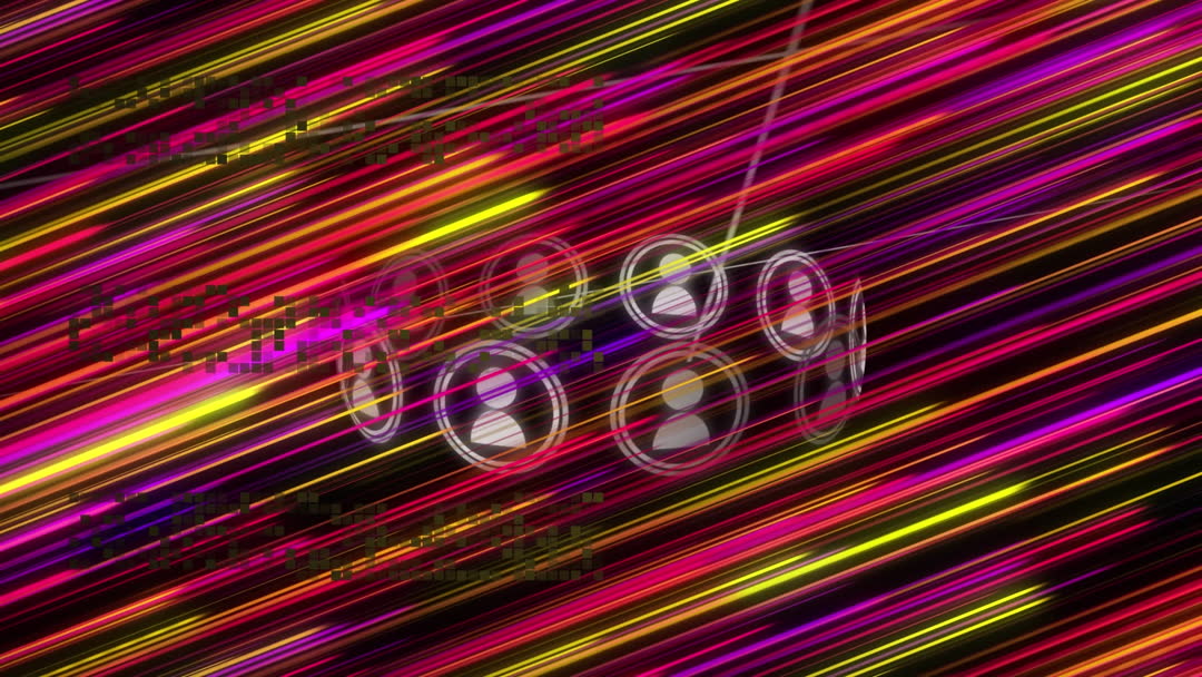 This vibrant video features a digital interface with media icons layered over dynamic neon light trails, suggesting data processing and global business concepts. It is ideal for use in presentations, websites, or advertising materials related to technology, digital marketing, or innovative solutions focusing on data visualization.