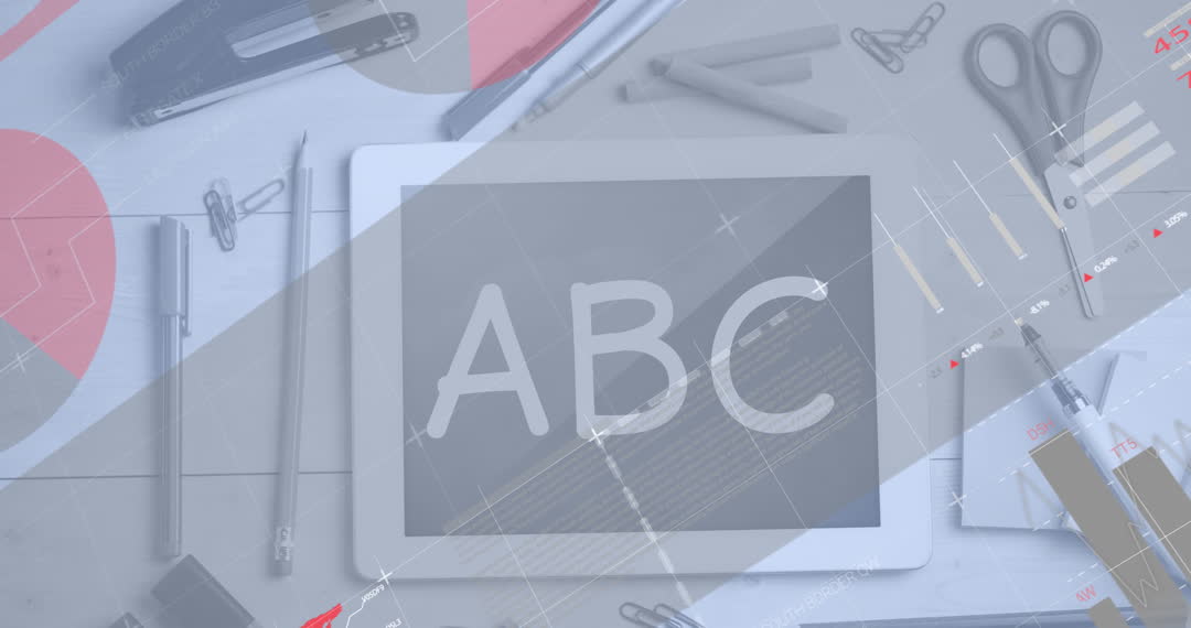Digital Interface with Stationery and ABC Text on Tablet Video