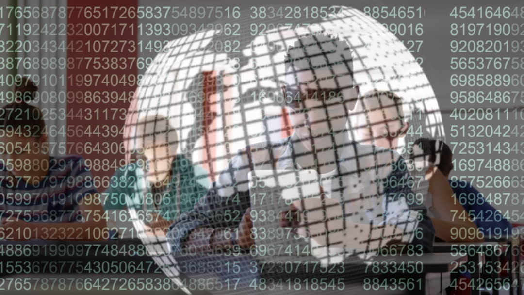 Digital Learning Concept with Spinning Globe and Data Matrix Video