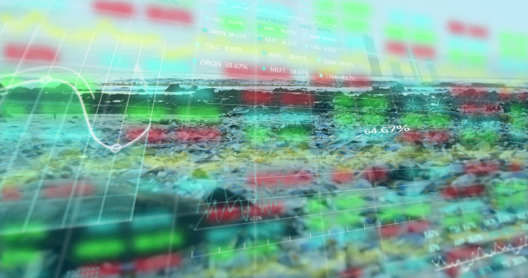 Digital Market Analytics Merged with Pollution Impact Imagery Video