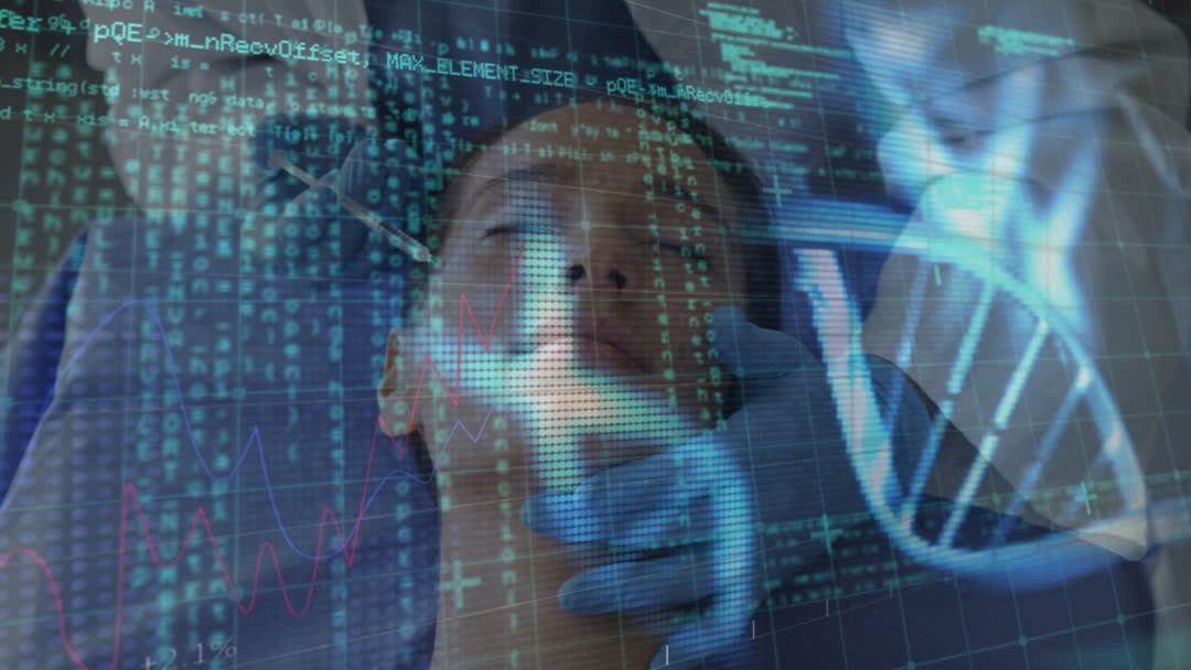 Digital Medical Technology and Surgical Interface Overlaid on Woman Video