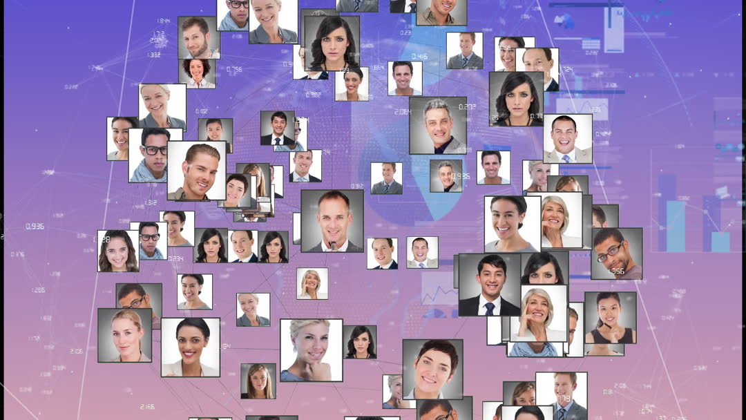 Illustrating digital connectivity and globalization with a collage of diverse people. Ideal for representations of global networks, digital interfaces, or communication platforms. Useful in contexts highlighting team diversity, international collaboration, or digital marketing strategies.