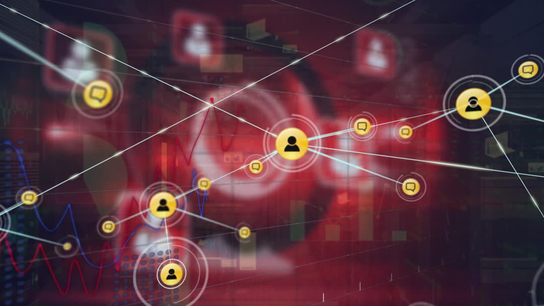 Offering a dynamic overlay of digital network icons interconnected over statistical data graphics, this video conveys the essence of modern business technology and information flow. Useful for illustrating concepts in technology blogs, business analytics presentations and resource websites exploring global network communications.