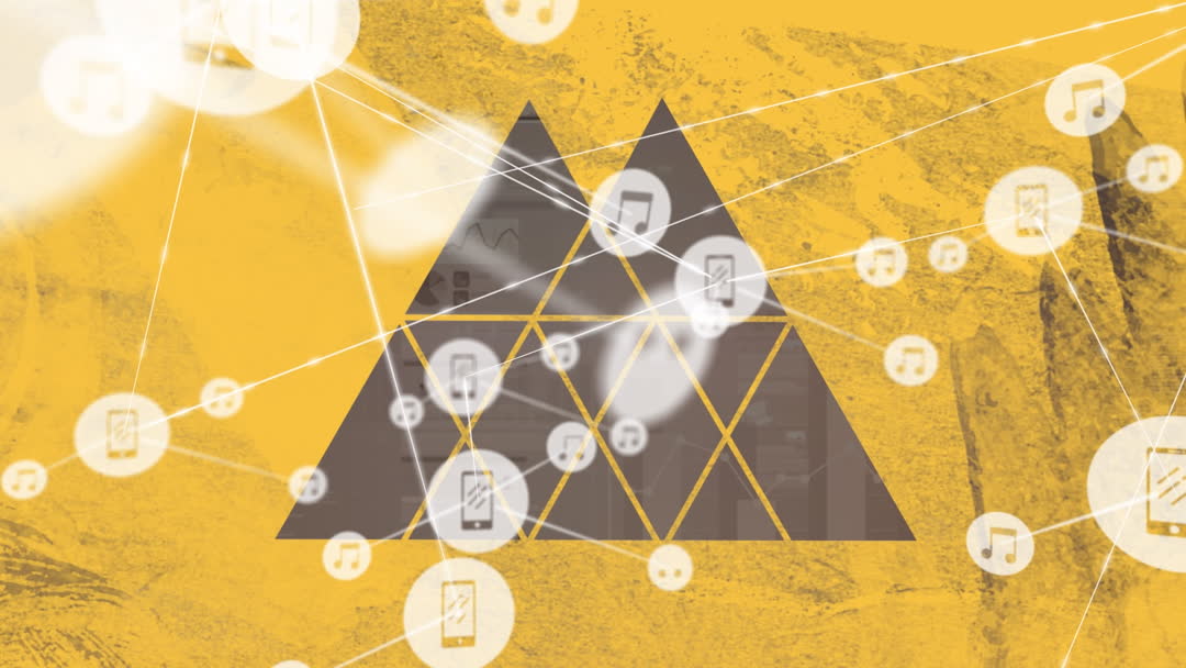 - Digital Network Concept with Music and Device Icons on Yellow Background
