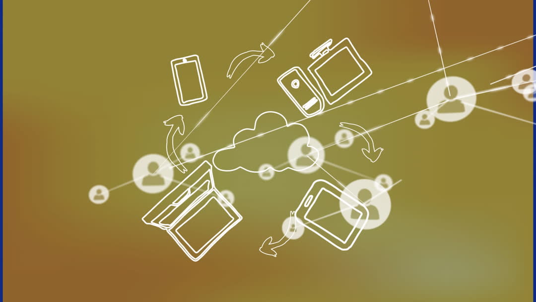This animation showcases a dynamic network of connections with arrows and a central cloud concept, symbolizing data flow and connectivity in a digital environment. The bounding illustrations suggest diverse digital devices linked through technology. Useful for demonstrating concepts of cloud computing, digital communication, data networking, or IT infrastructure in presentations, educational materials, and technology advertising.