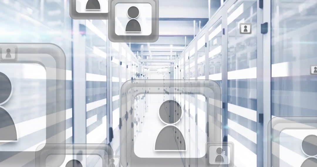 - Digital Network Connection Icon Overlay on Secure Server Room