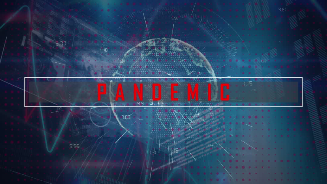 Animated visual showcasing worldwide technology interface and network data related to a pandemic theme offers a futuristic and informative aid. Can be used in technology-oriented presentations, virtual events, or industry webinars focusing on information analysis.