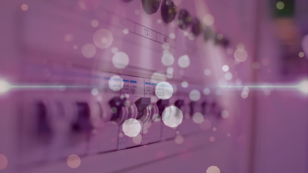 Conceptual videory featuring floating lights and dots over computer wires highlights modern digital connections and network data processes. Ideal for illustrating concepts of digital transformation, global communication, internet infrastructure, and cybersecurity advancements. Suitable for use in technology presentations, network tutorials, and IT services promotions.
