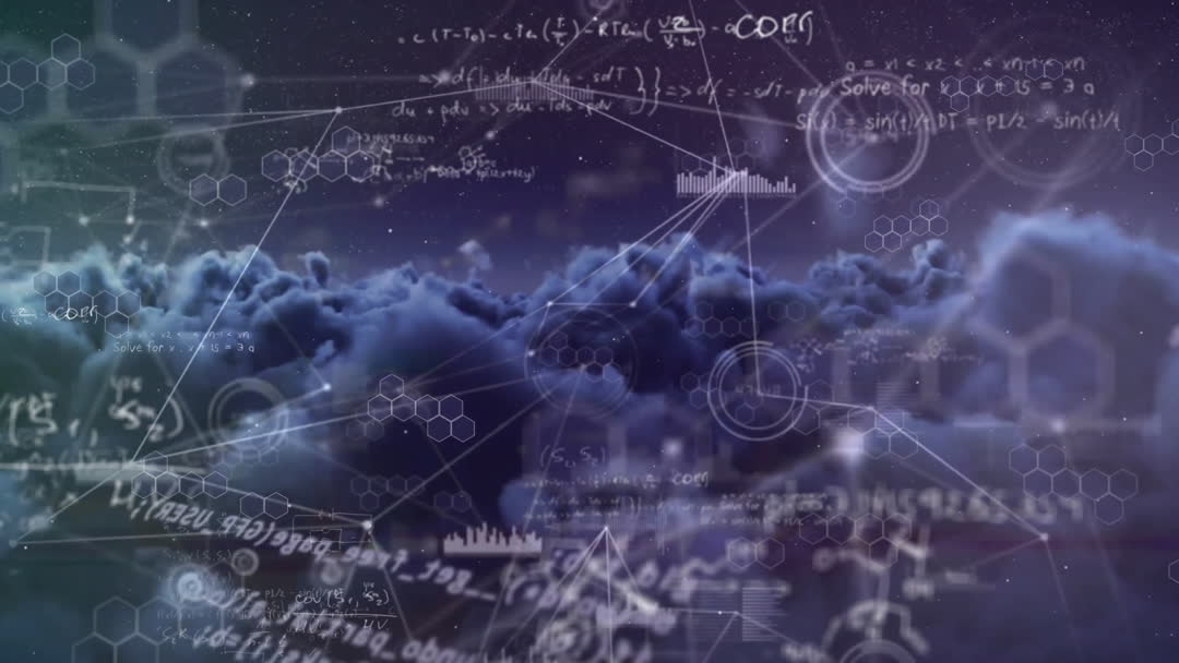 Digital Network Connections with Overlaid Programming Symbols in Abstract Cloudscape Video