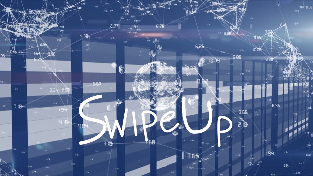 Visual representation of global network with digital swipe up interface and interconnected lines, emphasizing modern technology. Useful for concepts related to digital marketing, social media interactions, or technological advancements in data exchange.