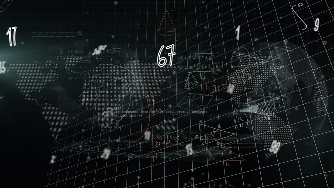 Image depicts intricate digital networks overlayed on a world map, featuring various data graphs like equations and charts. This can be used in presentations on global business strategies, data analysis, or digital transformation projects. Ideal for illustrating the interconnectedness important in finance and technology development.
