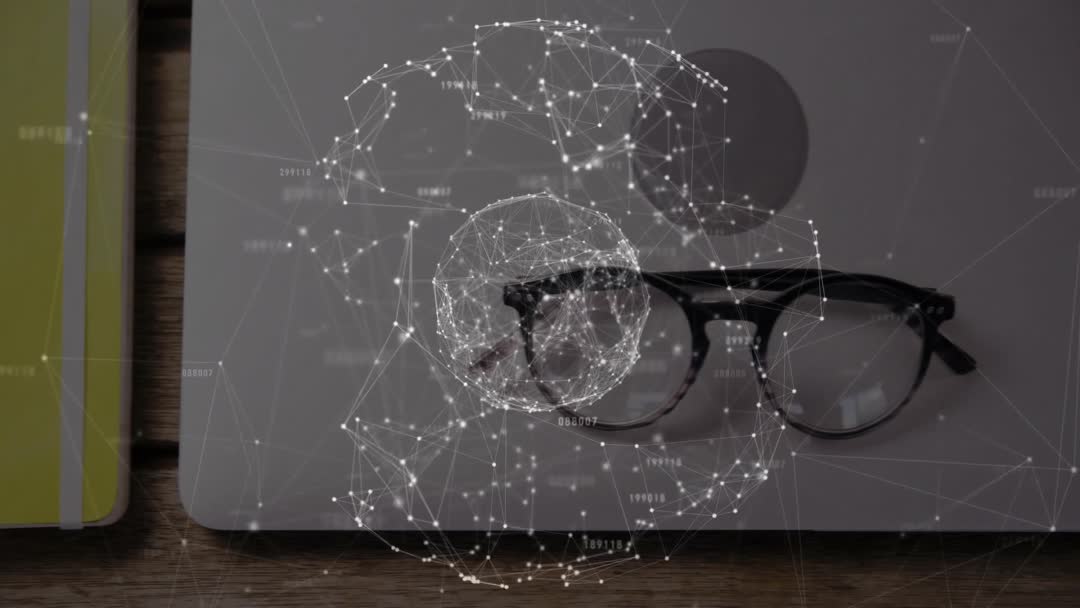Digital Network Overlay Enhanced Laptop Workspace Video