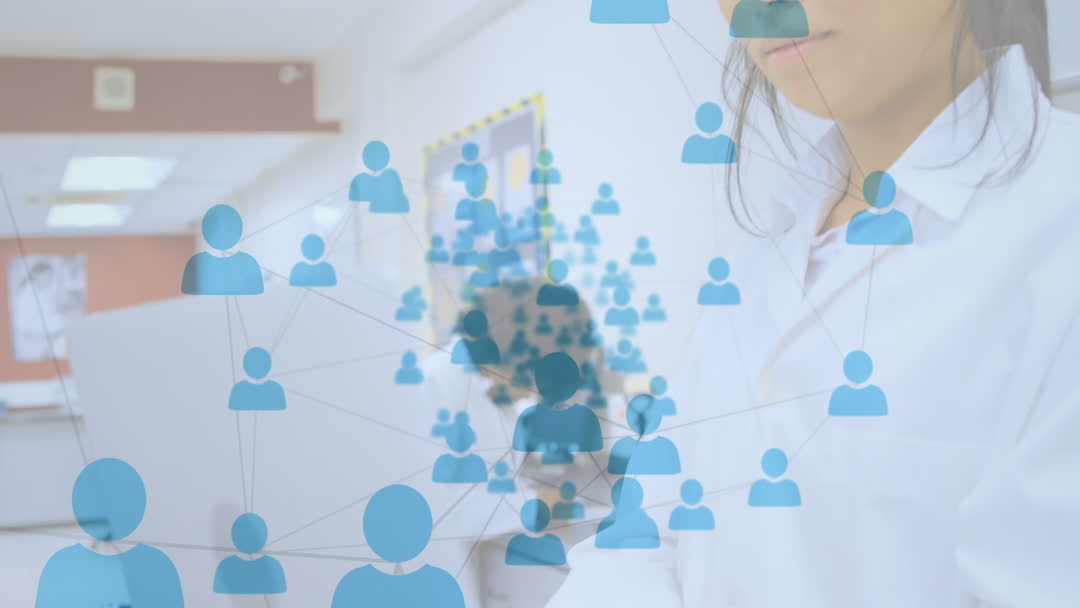 - Digital Network Overlay in Laboratory with Female Scientist
