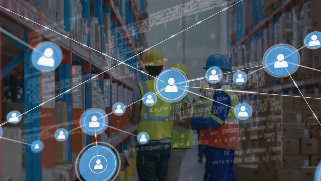 Digital Network Overlay in Warehouse Operation Background Video