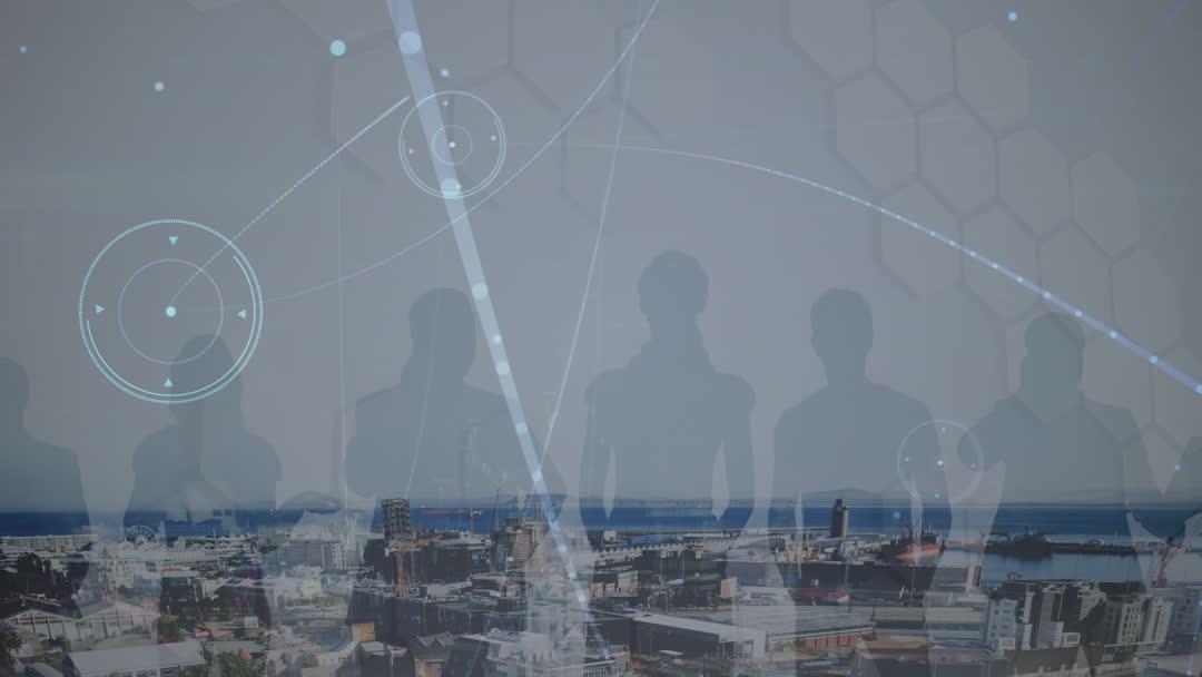 Digital Network Overlay on Cityscape for Global Development Concept Video