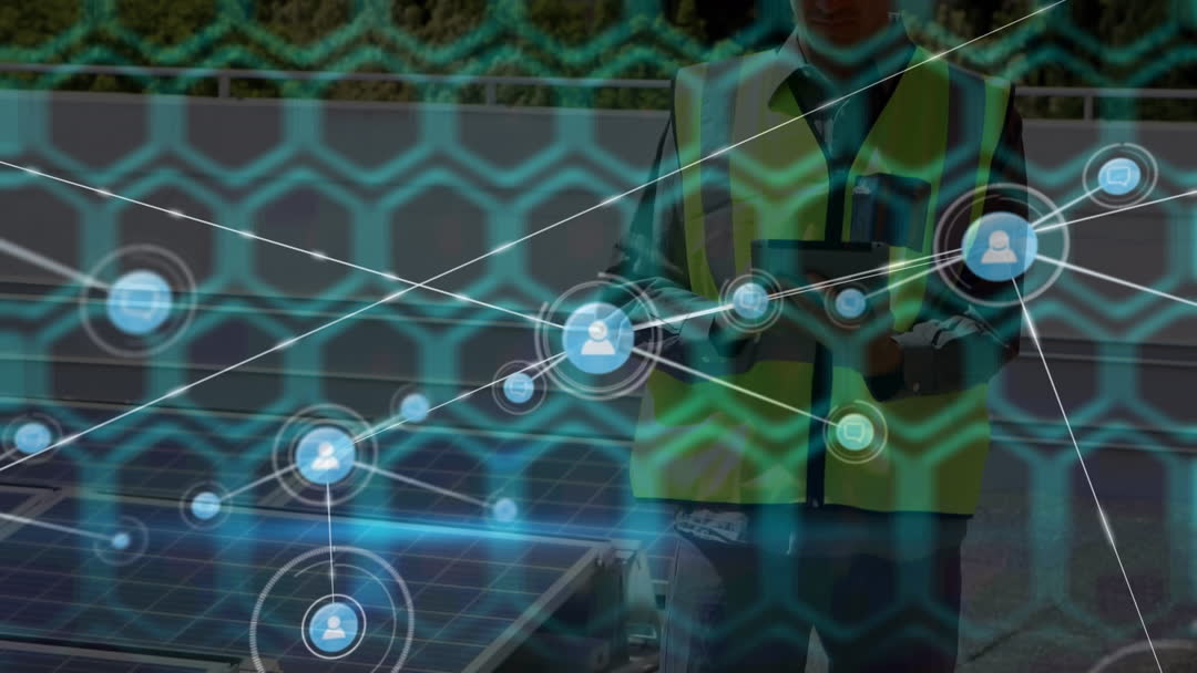 <a target="_blank" href=https://pikwizard.com/video/digital-network-overlay-on-engineer-with-tablet-on-solar-panel-rooftop/6d27ca9361aaf56684bbc60b11abfd1f/>PikWizard</a>