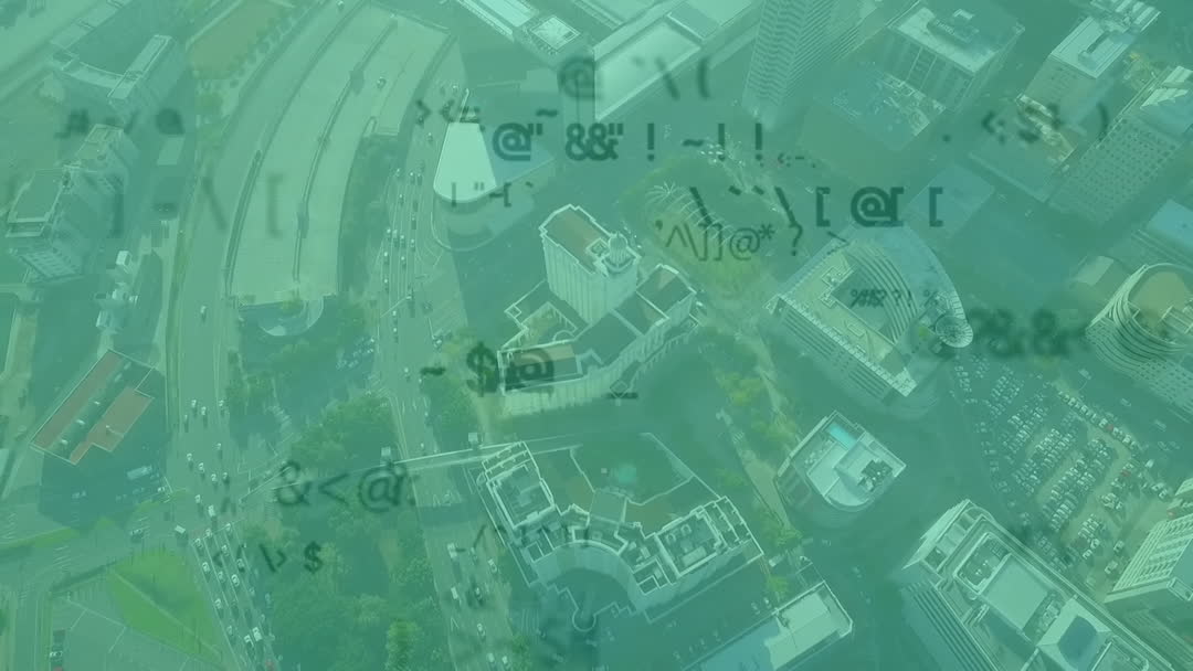 This animated transparency combines videory of urban infrastructure and symbolic digital network connectivity, illustrating modern business communication. Ideal for presentations on global business strategies, digitization in workplaces, or developing organized digital infrastructure. Suitable for marketing materials focusing on technological innovation or enhancing digital communication in business sectors.