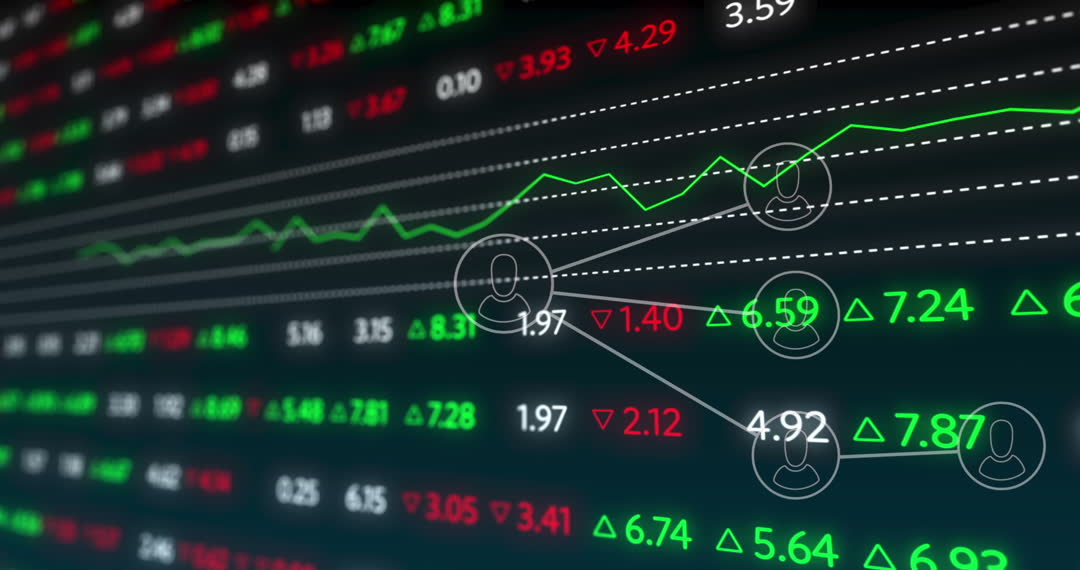 Dynamic visualization of a digital network illustrating connections in information and data processing. Green line graphs and numbers convey themes of analytics, financial markets, and technological interfaces. Useful for backgrounds in presentations on technology, finance, computing, or data analysis.