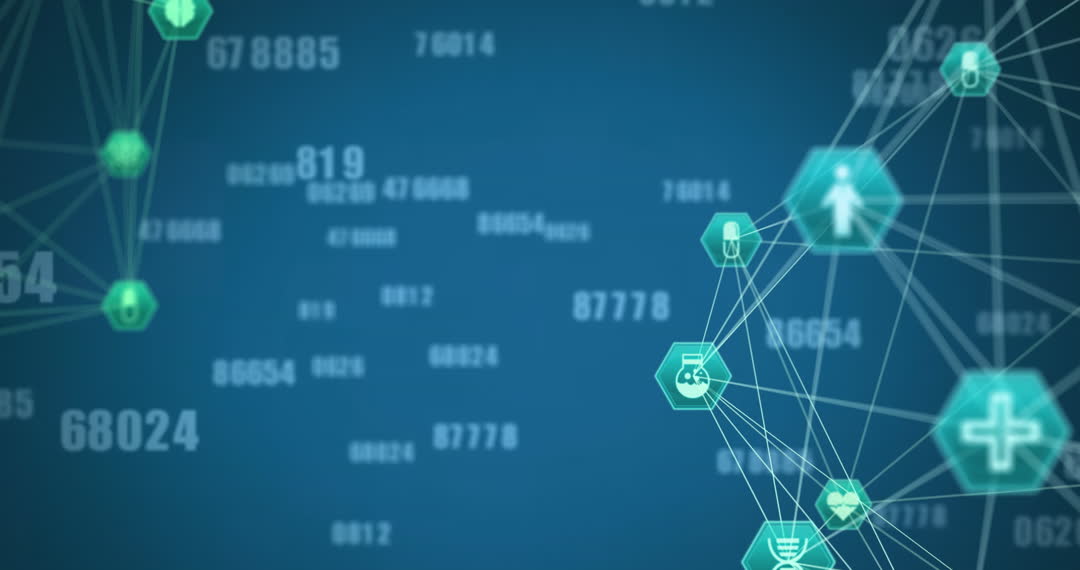 This modern illustration captures a digital network with multiple linked icons and changing numbers over a blue background. Essential for use in themes of communication, technology, and globalization, it emphasizes interconnected systems within working or medical fields. Useful in illustrating data visualization, business growth strategies, or innovations in global economies.