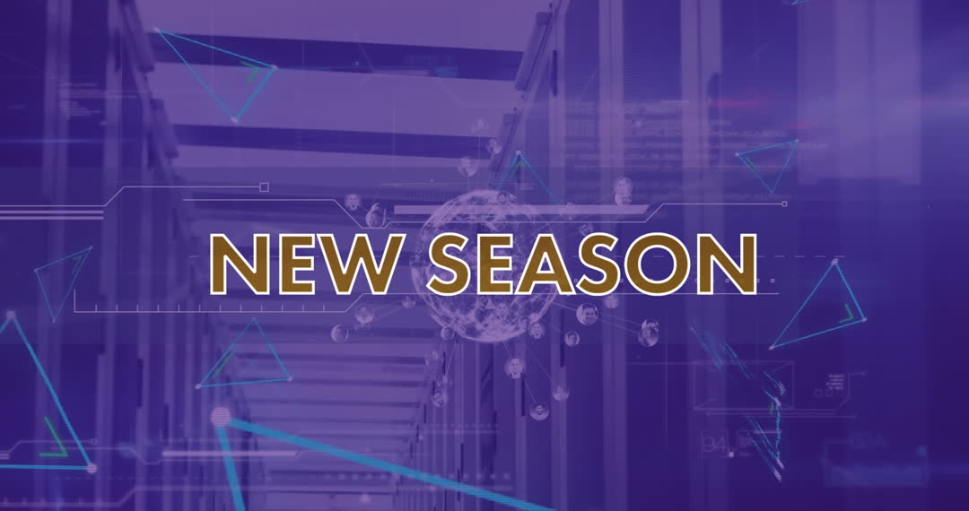 A dynamic visual representing the launch of a new season in a digital context, featuring a globe with tech icons and a server room backdrop. Ideal for marketing campaigns, tech product launches, and innovation-themed promotions.