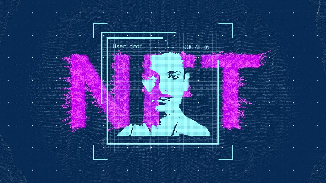 Displays digital NFT art showing user profile integration concept in vibrant colors. Suitable for technology-themed projects, blockchain education, and cybersecurity presentations highlighting advanced digital interfaces.