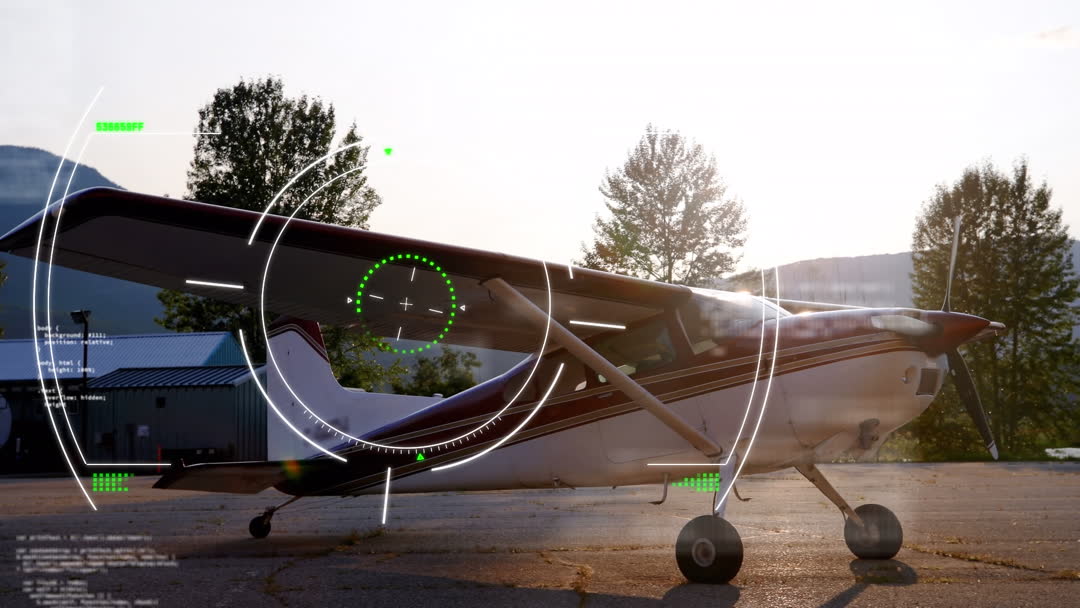 This visualization combines aviation and digital interface concepts, featuring a small airplane on a tarmac with digital scanning overlays. Useful for topics on innovation in travel, advancements in aviation technology, and global communication systems. Ideal for articles, websites, or presentations discussing technological impacts in the aviation industry.