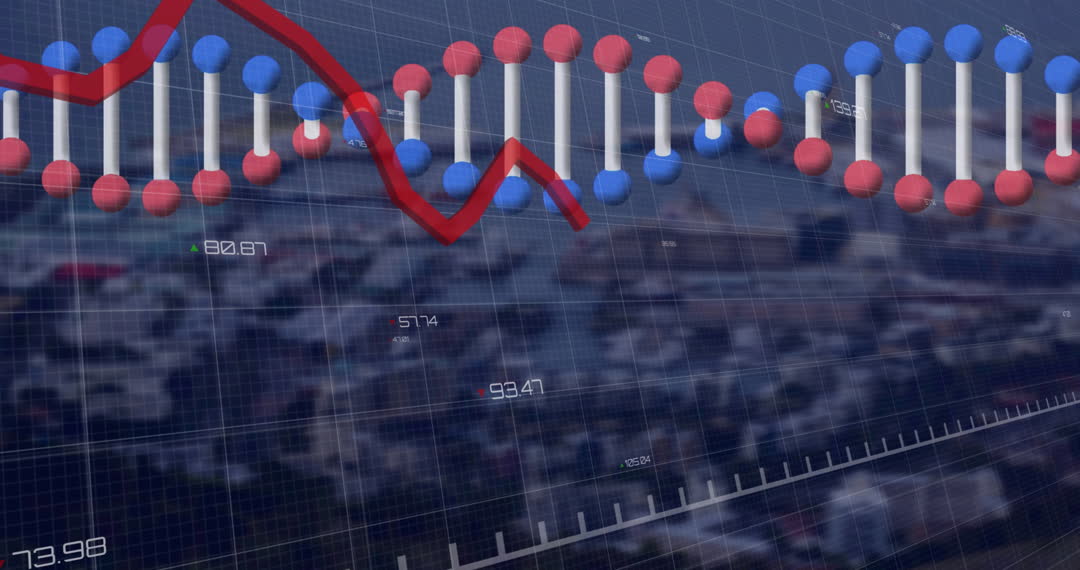 - Digital Overlay of DNA Helix and Financial Data Graph