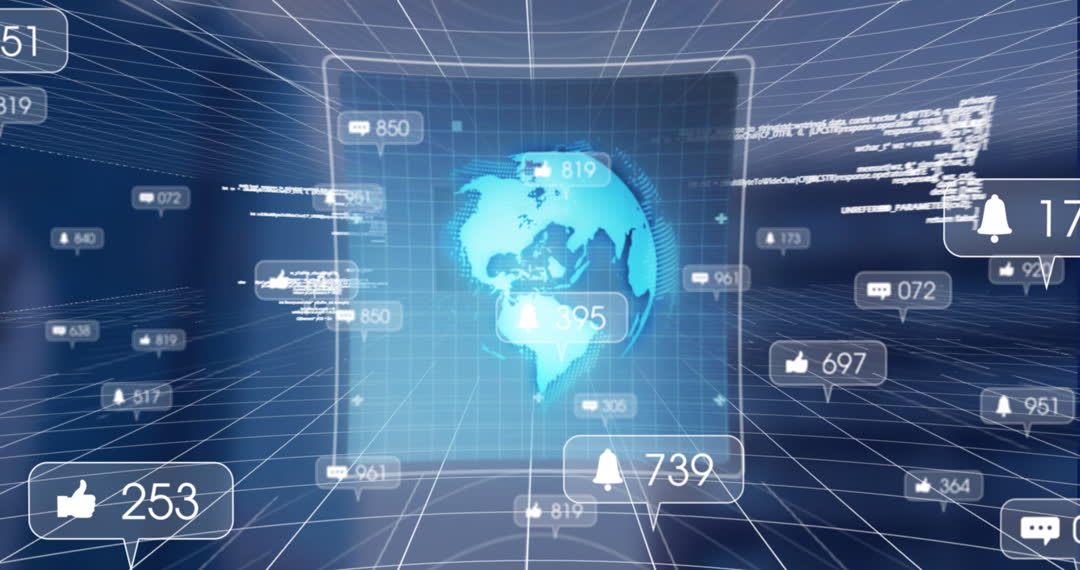 Digital Overlay of Social Media Network Icons on Global Grid Video