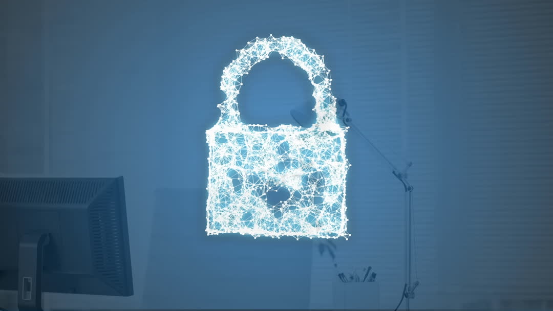 Digital Padlock Hologram in Office for Data Security Concept Video