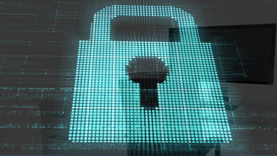 Digital Padlock Overlay in Office Setting for Data Security Video
