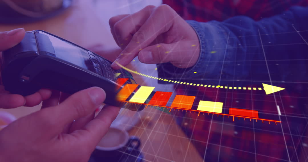 Visual showcasing fusion of modern payment methods and data analytics technology. Depicts seamless blend of using contactless payments by diverse individuals and insights derived through data analysis. Ideal for illustrating finance technology articles, digital economy trends, highlighting payment innovations, and understanding consumer behavior through data-driven technologies.
