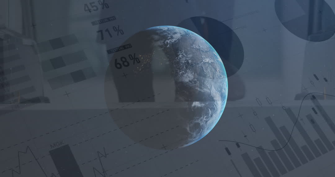 Animation depicting Earth with overlay of digital charts and networks, highlighting global connections and data interactions. Suitable for concepts involving technology, digital resources, global networking, analytics, and information sharing. Ideal for use in technology presentations, business reports, and educational materials.