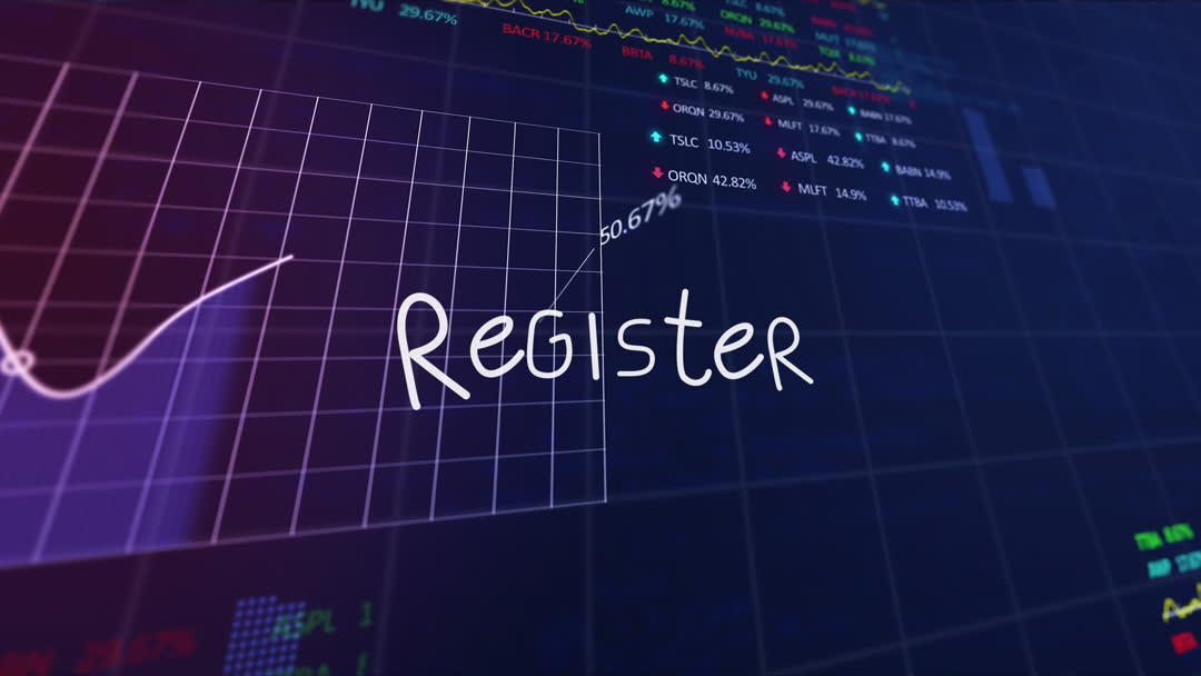 Background displays dynamic data visualization featuring register keyword. Ideal for illustrating modern technology themes, social media interfaces, or financial analytics. Useful for exceptional presentations or teaching technical communication concepts.