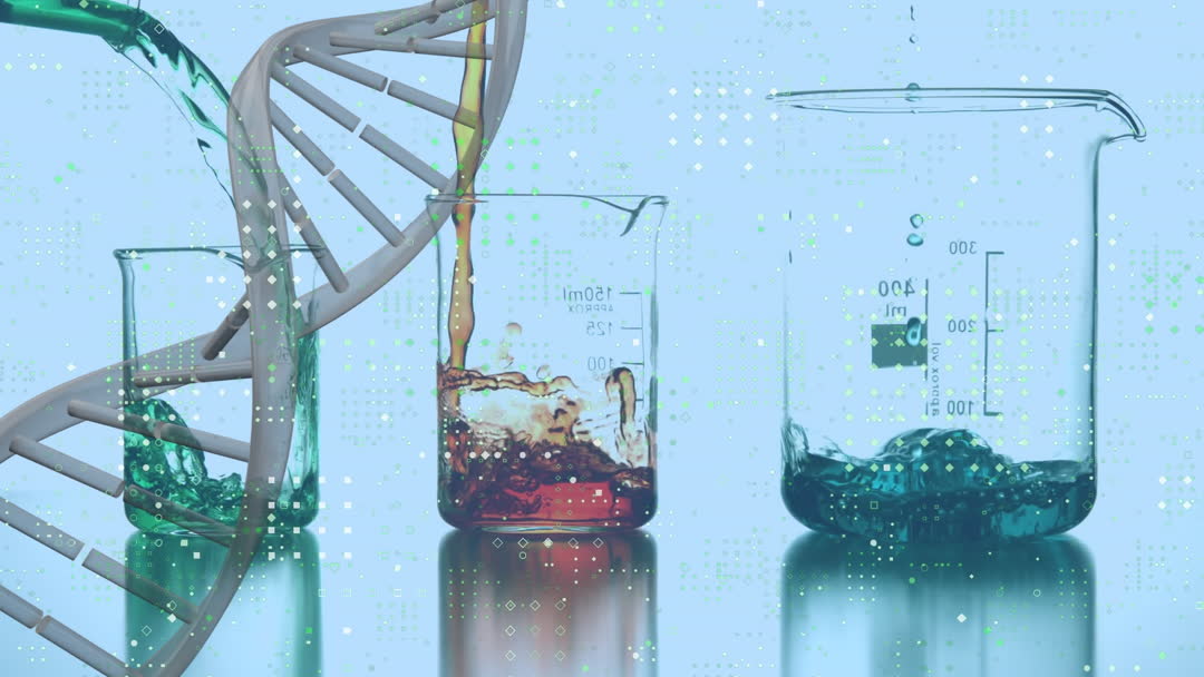 <a target="_blank" href=https://pikwizard.com/video/digital-science-concept-with-dna-strand-and-beakers/46f13a4b5313e37b7ee2d813fe82f1eb/>PikWizard</a>