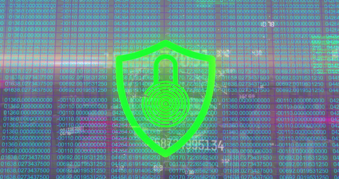 Illustration depicting cybersecurity with a shield and lock icon overlaying a backdrop of data and numbers in blue and green hues. Represents digital protection and privacy. Ideal for use in technology and IT-related articles, for cybersecurity awareness campaigns, and educational materials on data safety.