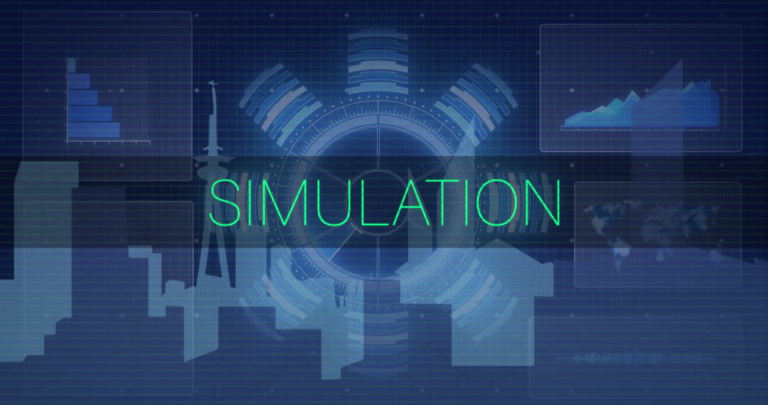 Depicts a digital interface focusing on simulation and data processing, providing insights into modern technology and global computing initiatives. The background features dynamic data graphics and charts. Ideal for use in technology presentations, cybersecurity developments, digital transformation strategies, and educational platforms highlighting data-driven advancements.