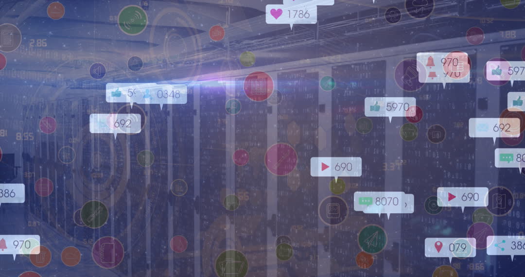 Illustrating intersection of social media engagement with data technology. Suitable for use in technology blogs, digital marketing materials, and presentations on network infrastructure and online networking dynamics.