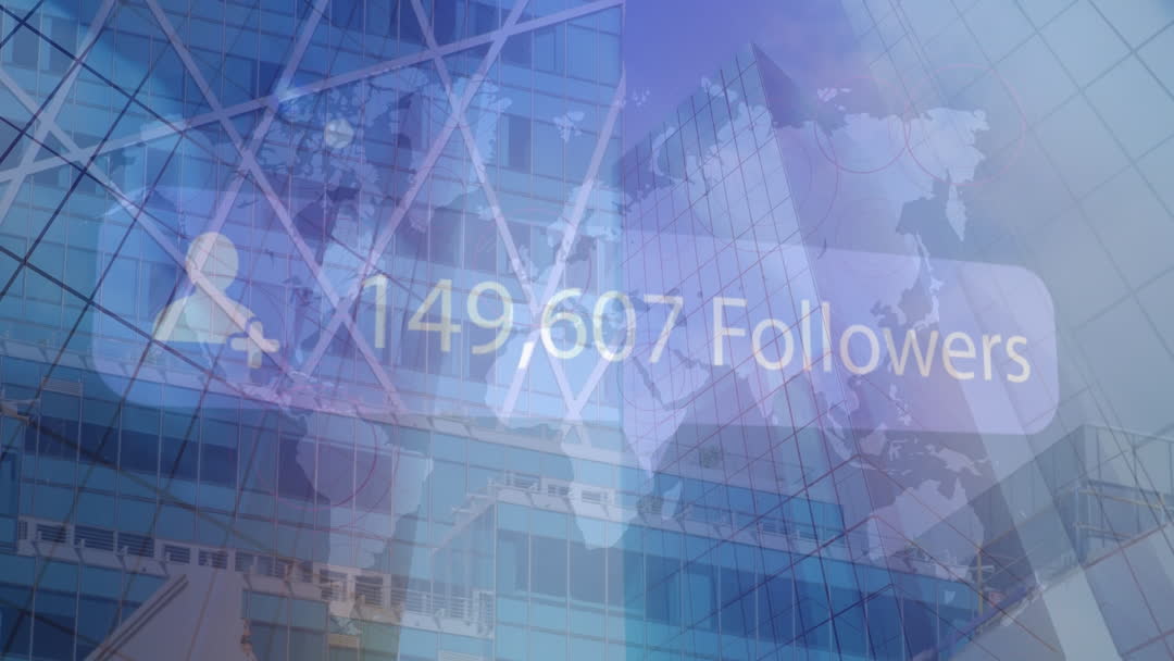 Visual is blending elements of social media growth with a modern city view, appealing to themes of global connectivity and urban business expansion. Concept suitable for illustrating articles or advertisements about technology's role in urban development, innovation strategies, or social media trends in global societies.