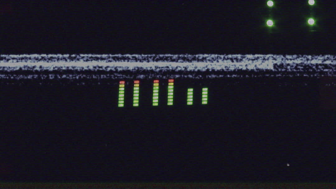 Animation showcases speculative interference effects and glitchy bars over a dark background. Indicates technological malfunction, theme prevalent in media or creative digital projects dealing with cyberspace. Ideal for use in digital presentations, tech interface promos, or visualizations for audio equipment integration.