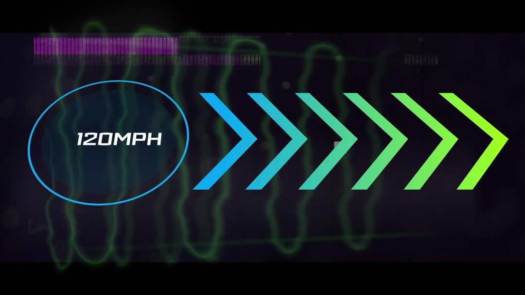 This dynamic visual shows digitally rendered arrows with a speed indicator reading '120MPH' on a dark background with fluctuating data patterns. Suitable for illustrating high-speed data transmission, modern technology concepts, or promotional materials for tech and network services. Ideal for use in presentations addressing digital innovation, speed optimization, or the future of global technology infrastructures.