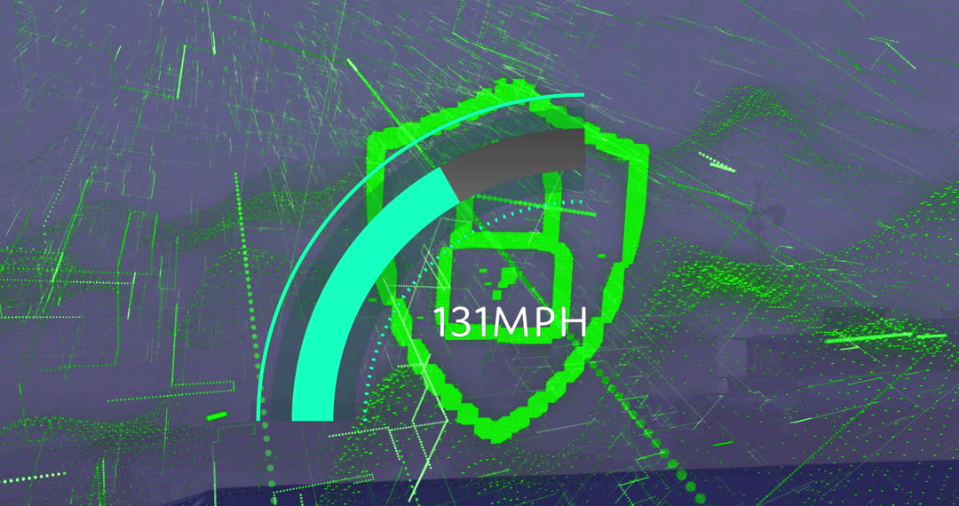- Digital Speedometer and Padlock Overlay on Cityscape
