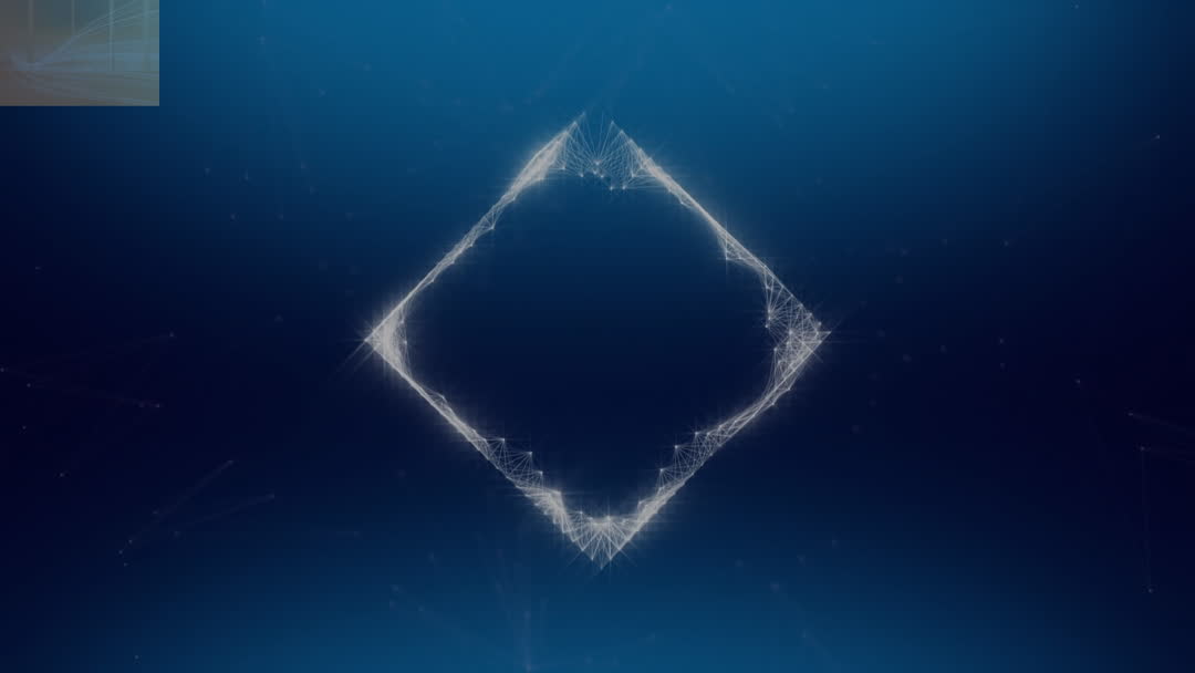 Abstract animation featuring a digital square formed by glowing lines over a navy blue background. This visually striking digital concept symbolizes technology and global data processing. Ideal for use in presentations, tech-related content, or promotional materials showcasing themes of connectivity and innovation.