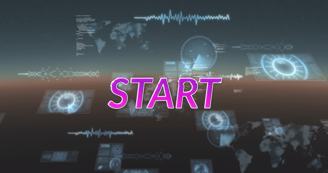 Futuristic digital theme featuring a vibrant 'Start' text overlaid on dynamic data processing graphics and interface elements. Suitable for representing digital innovation, technological advancements, software startup launches, or modern data analysis. Ideal for presentations, social media promotions, or tech-related articles.