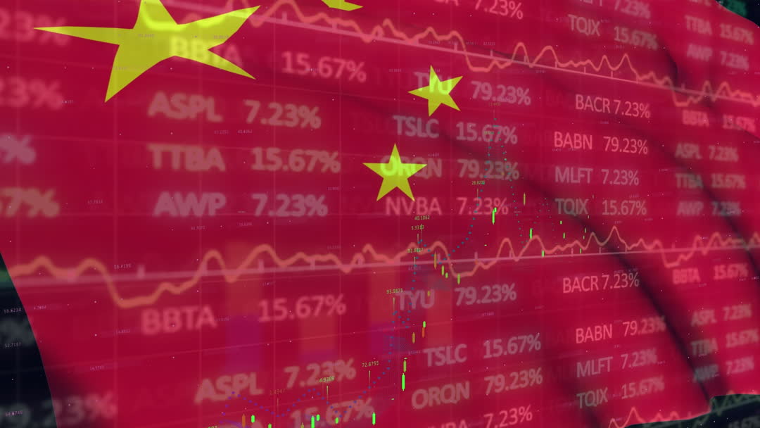 - Digital Stock Market Ticker Overlaid on Chinese Flag Illustration