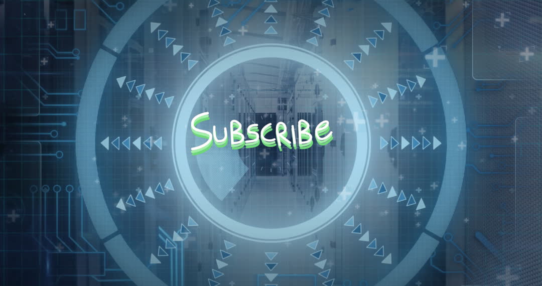 Image features a digitally animated "Subscribe" message set against a microprocessor and server room backdrop, conveying a futuristic technology theme. This visual is ideal for online platforms or media projects focusing on technology, digital subscriptions, or digital marketing efforts, enhancing viewer engagement by highlighting actionable prompts.