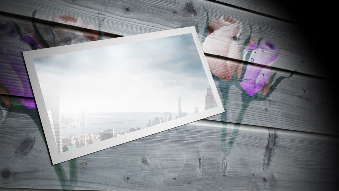Animated overlay showing a digital tablet with a city view on wooden boards decorated with floral designs. Represents global communication and digital connectivity. Useful for illustrating concepts of modern technology, connection, or urban life with artistic elements. Suitable for blogs, presentations, or projects focusing on digital transformation.